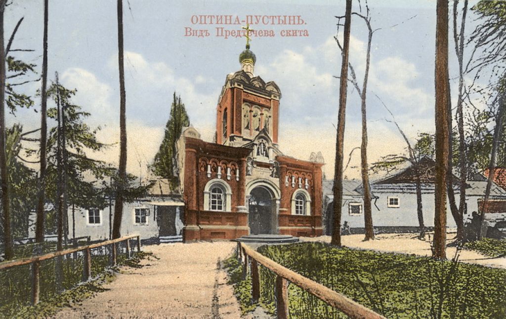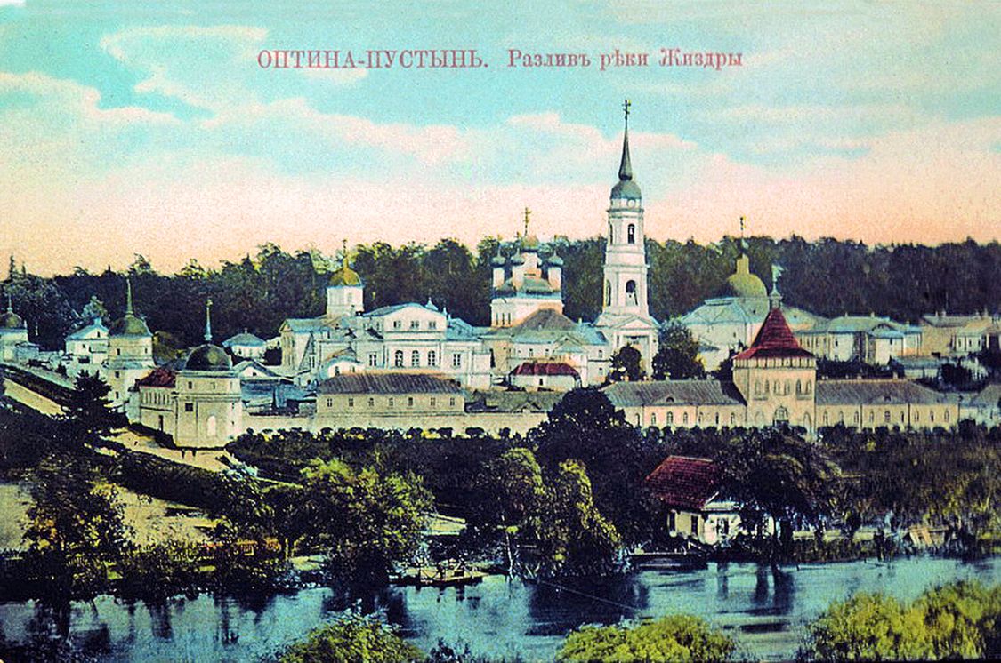 В начале XX века Оптина пустынь была большим процветающим монастырем, здесь жили около трехсот монахов. Богослужения совершались в шести храмах обители и двух храмах Иоанно-Предтеченского скита. В библиотеке хранилось около 60 тысяч книг и рукописей.