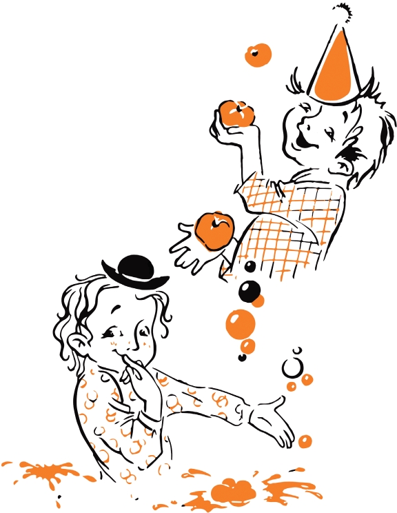 Мы – жонглёры, мы – жонглёры!Полетели помидорыВверх-вниз! Вверх-вниз!Браво-браво! Бис-бис!В коридоре шум и споры,И взлетают помидоры,Вверх-вниз! Вверх-вниз!Браво-браво! Бис-бис!Неудача. Ах, ах!Помидоры бах-бах,Полетели прямо вниз.Папу с мамой ждёт сюрприз!А жонглёры со всех ногПобежали в уголок,Побежали наутёк,Притаились и молчок.Опустив печально взоры,Подбирая помидоры,Намывают коридорыЧисто, быстро полотёры.Три-четыре! Три-четыре!Чистота теперь в квартире.Это был второй сюрприз,Браво! Браво! Бис! Бис!