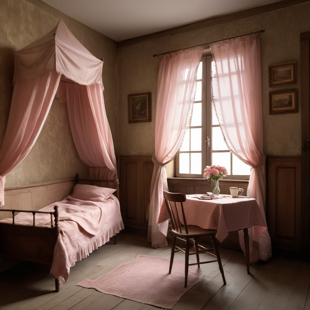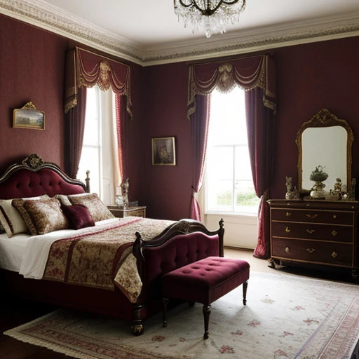 Комната выглядела довольно богатой. Окна украшали шторы из вишневого бархата, в дальнем углу стояло кресло с темно-коричневой обивкой, а особенно выделялась огромная кровать с бордовым покрывалом, справа от нее стоял комод с тремя ящиками, сделанный из красного дерева, а слева размещалось зеркало в человеческий рост в коричневой оправе.