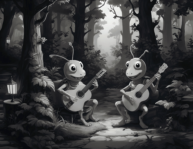 – Прочитает басню вамАвтор многих эпиграмм,Наш учёный и эстет,Замечательный поэтПро лесных зверей и птицИ других известных лиц,Про задиру ВоробьяИ про друга Соловья.Говорю с волненьем я:– Приглашаю Муравья!Бурные аплодисменты!Что за бал! Что за моменты!Радость, счастья предвкушенье,Ведь поэт уже на сцене!На дощатые подмосткиВыбежали две стрекозки.И запели, зазвенелиЗолотые голоса,Всё сумели: отогрелиНаши души и сердца!И добились своей цели:По щеке течёт слеза!О цветах, любви и лугеПели нежно две подруги.Сердце в ритме застучало,Публика кричала:– Мало!Браво! Бис! Поклон. Признанье!– Вы исполните желанье:Спойте нам всем на прощанье!Снова песня полиласьИ в сердцах отозвалась!Закружили все потом:Комариха с Пауком,И букашки, и козявки,И большие, и малявки.Их веселье – всем награда.Как за них мы с вами рады!Время быстро пролетело,Незаметно свечерело,Тут и вышли светлячки —Все ночные бодрячки,Всем раздали шарикиИ зажгли фонарики.