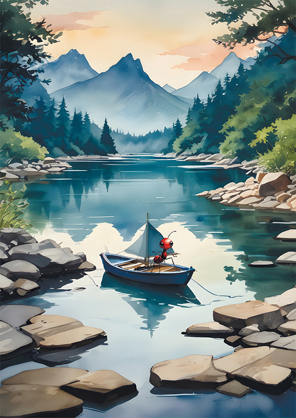 И однажды утром ранним,Отправляясь к странам дальним,Только солнышко взошлоИ немного рассвело,Муравьишка, друг отважный,Снарядил корабль бумажный,Не сошла ещё роса,В небо поднял паруса.И не страшно же емуВплавь пускаться одному!Дунул лёгкий ветерок —Удержать корабль не смог.Хоть волна невысока,Но для крошки велика!Вмиг надулись паруса —На глазах блестит слеза!Волны бьются за кормой,Берег скрылся за спиной.Он схватился за штурвал —Да немного опоздал:Наклонился парус вбок.Что ещё он сделать мог?И к опасностям вперёдНачался его полёт.Унесла его рекаНа чужие берега.Еле выбрался дружокНа песчаный бережок.Отлежался, огляделсяИ на солнышке согрелся.Огорченье велико:Он от дома далеко.Как отважный Робинзон,Думать стал: а где же он?Посмотрел: Жучок бежит,По делам своим спешит.– Подожди и дай ответ,Ты спаси меня от бед!Небольшой я Муравьишка,Умные читал я книжки.Плот себе соорудил,К берегам чужим приплыл.Помоги хотя б немного,Укажи домой дорогу!– Что-то сделал ты не так.Муравей – и вдруг моряк!Я не знаю, как тут быть,Комара бы нам спросить.Он летает, много видит.И тебя он не обидит.Прилетел большой Комар.Мудр он был, хотя не стар.– Дайте с силами собраться,До семьи своей добраться.Я ушиб себе животик:Больно стукнулся о бортик.В незнакомом я краю,Как найти свою семью?Вы мне только помогите,Муравейник отыщите!Говорит Комар парнишке:– Непослушный шалунишка!Ты зачем ушёл один?Сам себе ты господин!И в конце сказал Комар:– Ты забудь про свой кошмар,Для нас речка – океан.Полечись пока от ранПосле трудного пути.Помогу тебе найтиМуравейник и родных,Раз ты думаешь о них!Улетел Комар далёко,Но успел вернуться к сроку.И сказал он Муравью:– Помогать друзьям люблю!Движется всё к новоселью,За высокой старой ельюНа полянке, у ручья,Ждёт тебя твоя семья!Муравейник там большой,Он и есть твой дом родной.Там высоки, краснощёки,Работящи и крепки —Все приятели мои —Живут дружно муравьи!Муравьишка огорчился:– Всё же ты, Комар, ошибся,Муравейник мой роднойЗа огромною сосной.Там широкая рекаИ крутые берега.Невысокого мы роста,И живём мы очень просто.Сомневаюсь очень я,Что моя это семья.– Не спеши, дружок родной,Ты совет послушай мой!Ты совсем один осталсяИ немного растерялся.Там найдёшь себе друзей,Вместе будет веселей.В осень будет моросить,В зиму снегом заносить,Очень нужен будет дом —Вот хочу сказать о чём!Что же делать Муравью?Где искать свою семью?– Все мне беды по плечу!Хорошо, с тобой лечу.Полетели с КомаромВ незнакомый ему дом.Приземлились, отдышалисьИ друзьями распрощались.Муравьишке очень трудно:День тяжёлый, долгий, нудный,Неизвестность и нуждаИ событий чередаВовсе парня довела,В неизвестность завела.Видит: по тропе леснойМуравьи идут гурьбой.Высоки, сильны красавцы,Словно солнышка посланцы.Встал мальчонка на пути —Мимо вроде не пройти.– Ты чего стоишь без дела?– Ты, малыш, уж очень смелый.Без работы и трудаНет прохода к нам сюда.– Рыжеватый, низкорослыйИ совсем, дружок, не взрослый.– Я, конечно, слишком мал,Но подрос и сильным стал!Прибыл к вам на кораблеПо речной большой воде.Повзрослел, окреп немножко,На своих стою я ножках.Друг Комар сегодня спас.Но могу прожить без вас,Не прошусь к вам на постой…– Не спеши, дружок, постой.– Мы не гоним же тебя,Все мы тут одна семья.– Будешь братцем ты для насНа всю жизнь, а не на час.– Нас Комар предупреди