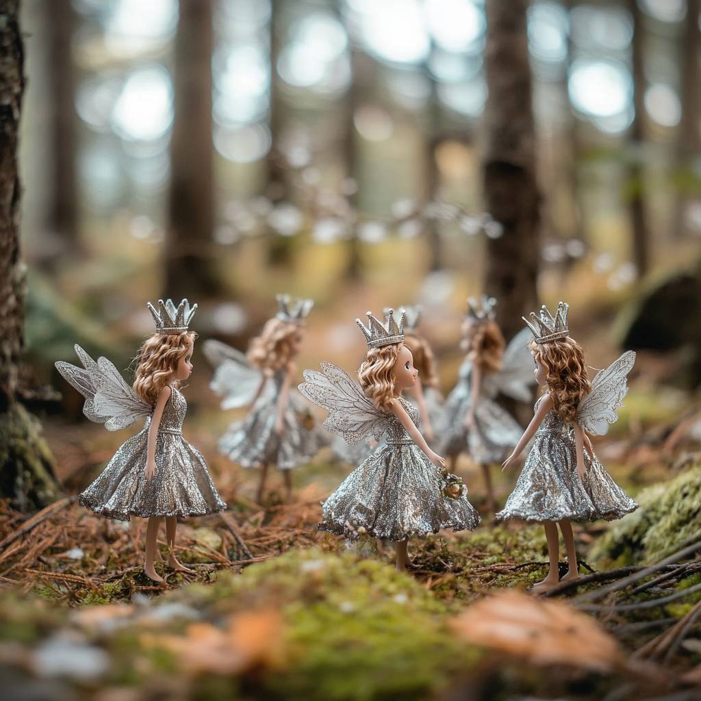 Когда Таня подошла ближе, она заметила, что вокруг дерева стоят маленькие лесные существа – феи. Они были маленькие, в красивых серебристых платьях, и волосы были серебристые, а на голове у каждой была маленькая корона. Таня поняла, что это не простые феи.Они выглядели очень обеспокоенными.