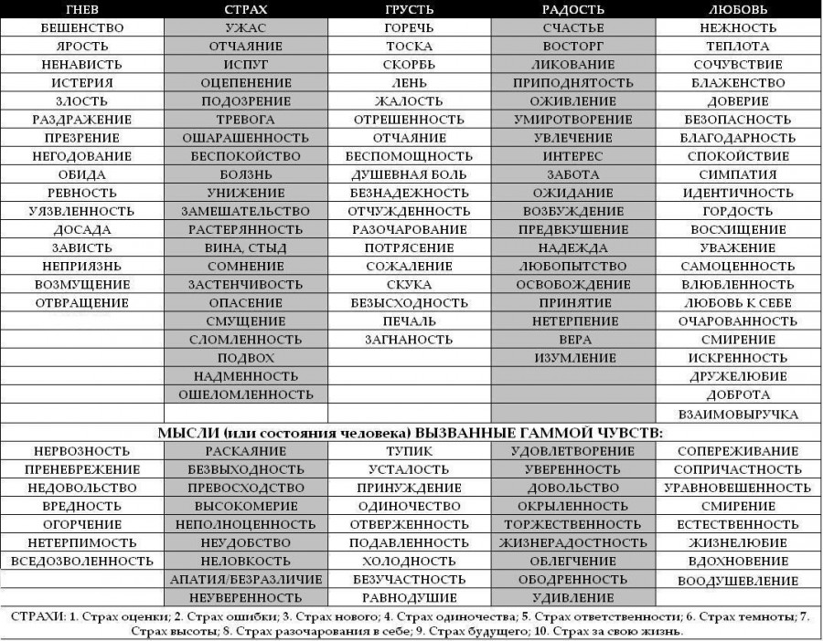 Таблица, приведённая ниже, может помочь вам более точно определить, что именно вы чувствуете: