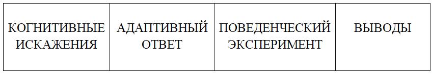Ниже приведена таблица именуемая бланком работы с дисфункциональными мыслями.