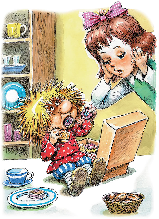 Наташа задумалась, что она скажет маме, если Кузька нечаянно съест все пирожные.