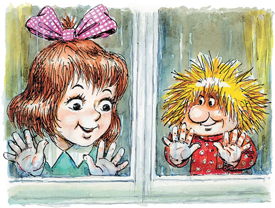 «Эка благодать – весь белый свет видать!» – обрадовался Кузька и прижался носом к стеклу. Девочка тоже посмотрела в кно.