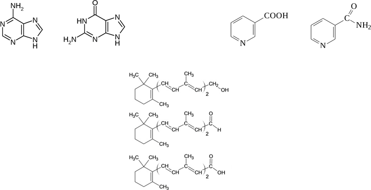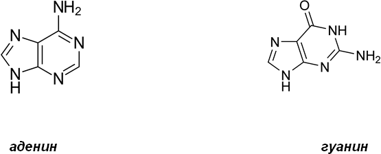 К пуриновым азотистым основаниям относят аденин (6-аминопурин) и гуанин (2-амино-6-гидроксипурин).