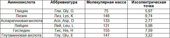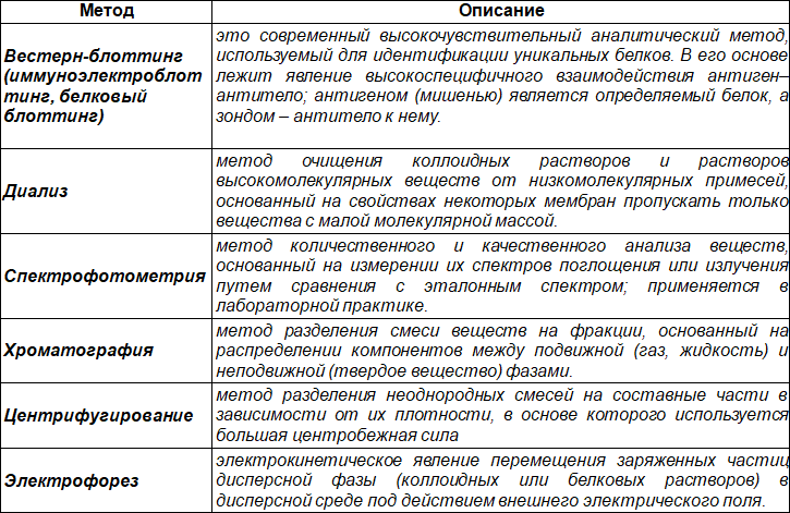 Таблица 6. Методы очистки и анализа белков и аминокислот