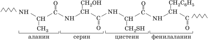 Полипептидная цепь состоит из остова (скелета), имеющего повторяющуюся последовательность и отдельных боковых цепей (радикалов). Последовательность аминокислот в цепи изображают, начиная с N-конца. Единственным отличием одних белков от других является сочетание радикалов, входящих в него.