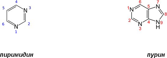 Гетероциклы, лежащие в основе структуры азотистых оснований: