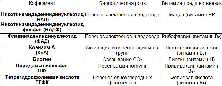 Таблица 7. Взаимосвязь витаминов и коферментов