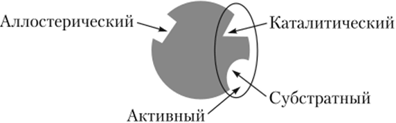 б) аллостерический центр – участок фермента, расположенный вне активного центра и присоединяющий низкомолекулярный аллостерический эффектор.