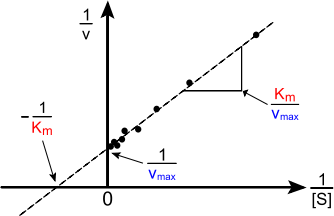 Рис. 5. Графическое изображение ферментативной реакции в обратных координатах