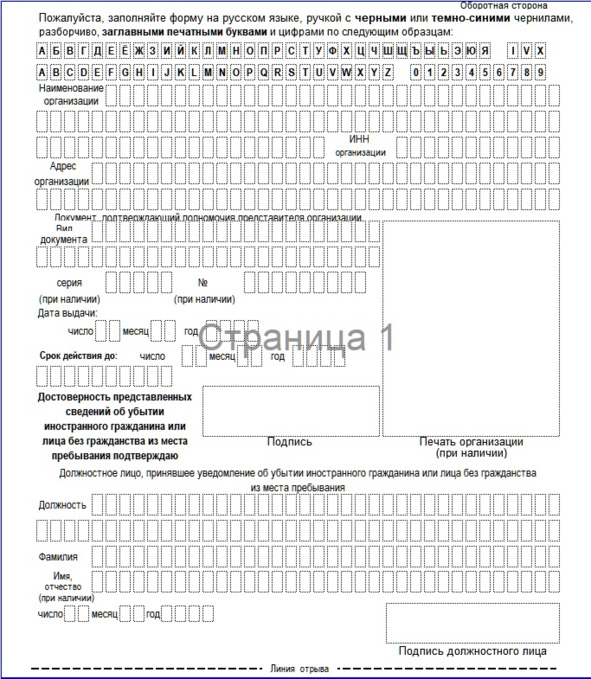 Форма уведомления о прибытии иностранного гражданинаили лица без гражданства в место пребывания