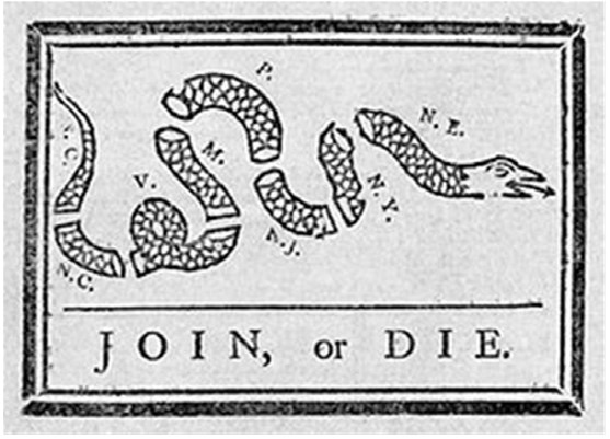 Змея Франклина имеет важное значение в развитии американской карикатуры. Она служила символом колониального единства и революционного духа американцев, который стал изображаться в различных вариациях в средствах массовой информации того времени, также как боевой флаг «Не наступай на меня» (don’t tread on me).