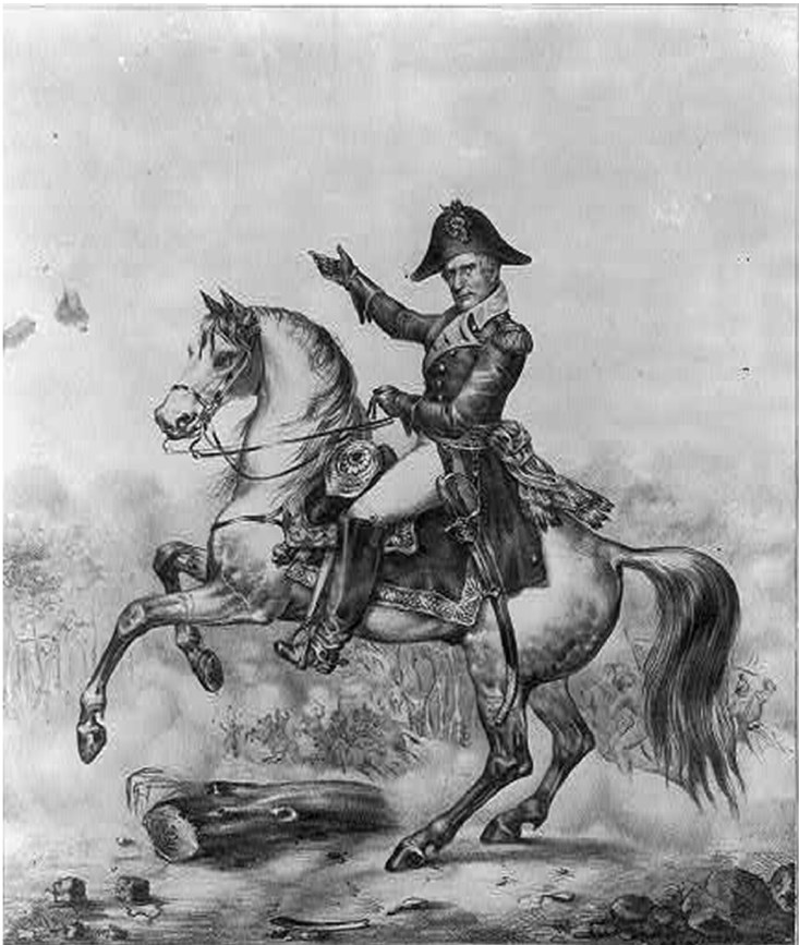Виги предложили в качестве своего кандидата генерала Уильяма Генри Гаррисона (1773–1841), прославившегося в англо-американской войне 1812– 1815 гг. Его напарником стал Джон Тайлер (1790–1862), бывший сенатор из Виргинии. Предвыборная литография Т. Синклера «Уильям Генри Гаррисон. Вашингтон Запада»291 должна была показать престарелого 67-летнего генерала отличным наездником, продолжателем дела Вашингтона. Образ Вашингтона был практически сложившимся архетипом самого образцового президента.