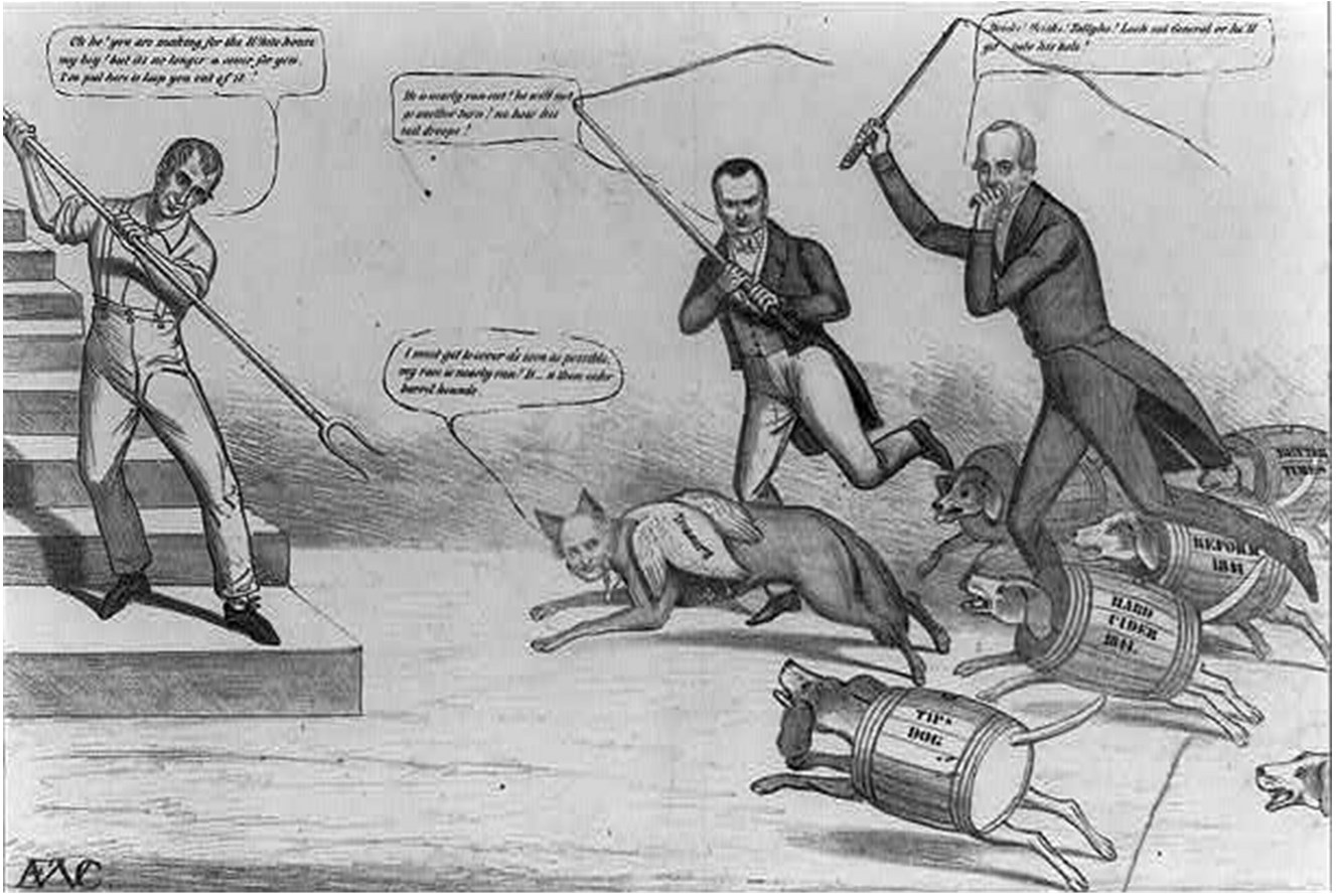 Демократы явно недооценивали способности вигов, которые в эту президентскую компанию взяли на вооружение все существующие приемы и создали новую тактику ведения политической борьбы, разработав и применив разнообразные приемы манипулирования общественным мнением. Они настолько были уверены в харизматическом воздействии на общественное мнение «старины Гикори» и своих старых лозунгов о «правах народа», что их кандидат в течение всей избирательной кампании оставался в Вашингтоне и не принимал в ней активного участия. У. Г. Гаррисон же совершил грандиозный предвыборный тур, выступая на митингах с речами, которые, конечно, не отличались ораторским искусством, но были понятными для народа.