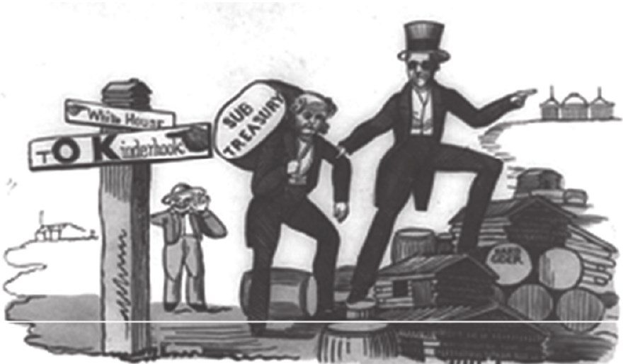 Ван Бюрен, ведомый Джексоном, несет на спине мешок с надписью: «Система казначейства», и не может никак преодолеть этот путь, путь с его завалами. И ее надо расчищать.
