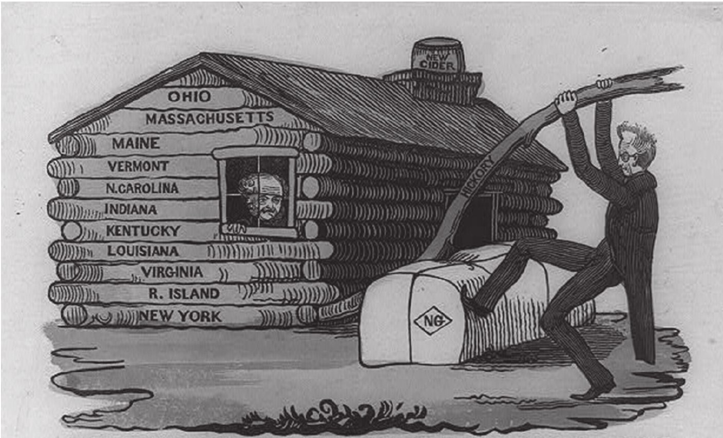 Этой насмешкой виги воспользовались, сделав одним из символов своей кампании – бревенчатую хижину и крепкий сидр. Все это являлось умелым воздействием на умы избирателей, формируя у них в подсознании мысль, что кандидат в президенты связан с жизнью простого народа. «Сражение теперь идет между бревенчатыми хижинами и дворцами, между крепким сидром и шампанским», – заявил один из лидеров северных вигов292. Одной из самых влиятельных газет стала созданная молодым журналистом Хорасом Грили «Log Cabin» («Бревенчатая хижина»), имевшая значительный успех, ее тираж достиг 80 тыс.293 Название газеты возникло из насмешливых заявлений противников Гаррисона: «Дайте ему деревянную хижину и бочку сидра, и он будет счастлив»294.