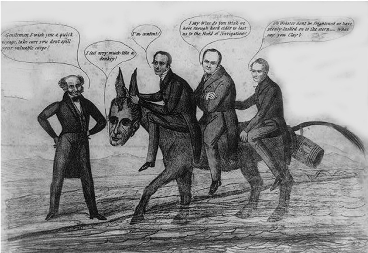 Антивигская карикатура была редкой в этот период, но все же существовала. В одной из них «Политический танцующий Джек»317 Гаррисон изображен в виде марионетки, которой управляет сенатор Генри Клей и конгрессмен Генри А. Уайз.
