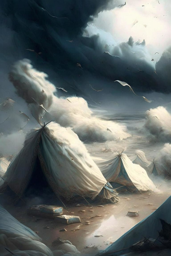 Вечером погода испортилась. Налетевший шквал ветра, как пушинки, срывал тенты шатров. Переворачивал лотки сувениров, поднимая вверх тучи пыли. Появившаяся рябь на воде в одно мгновение обратилась огромными волнами пришедшего с запада шторма. Накатываясь на берег, они сбивали с ног здоровых «береговых» помогающих посетителям выбраться из воды.