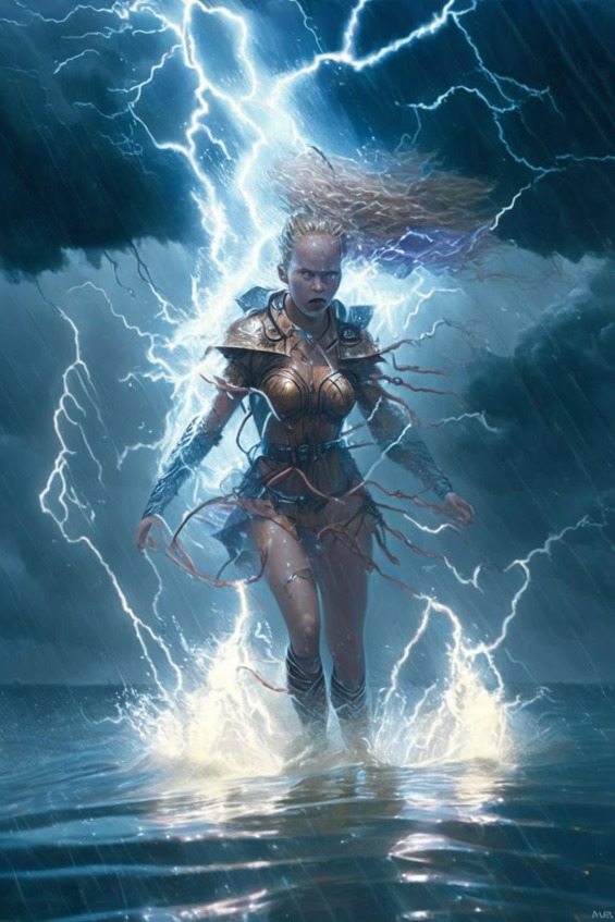 Сильный разряд молнии ударил в район погружения и большими кругами разошелся по воде, странным образом не задев Улы. Электричество, переместившись по прорезиненному костюму, не причинило девушке вреда и в конечном итоге рассеялось при значительном удалении.