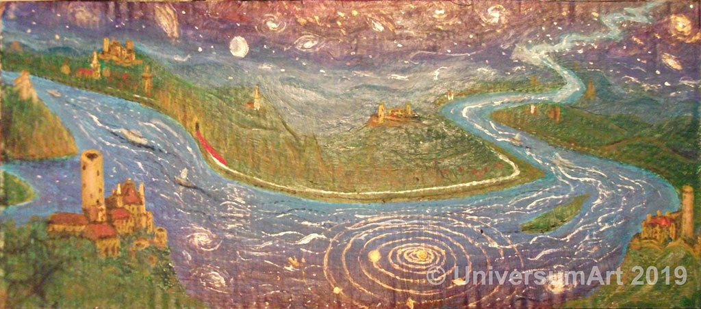 Плыть по реке… Плыть мимо берегов,В их линии вживаясь терпеливо…Быть – налегке?.. – Меж нимбами богов,Сквозь бег неуловимых облаков —Сбываясь в далей синих переливы…Теченью дней и судеб вопреки —Вдоль снов, застывших словно в ожиданье! —Вдышаться в каждый поворот реки:Волной ещё не бывших мирозданий…В тугих и томных звуках светотьмы,Неторных слов смыв тайные опоры, —С каким трудом – упругие холмы —Простор всё новый открывают взору!..Чтоб долгожданной Музыкой вскипалОчаг нот щедрых, длясь многозеркало, —Словно титан здесь русло прорубал,Плечами Ветра раздвигая скалы!..И вот – строка небесного письма —Чредует ритм, в наитьях многослойный:Течёт Река – Поэзия сама! —Как дух страны, во мгле холмисто-хвойной…По берегам – подняв божеств бокалС волной пьянящей в скользких солнц узорах, —Взрастают за́мки – продолженьем скал —Сквозь привиденчески-руинный шорох…Всё – в голос зреет – вестью колдовской,Лесов туман ваяя по откосам,Где вьётся Лорелеи песнь – рекой,Струясь закатом золотоволосым…Историй, бурь, скитаний ритм – хранимВод, гор, дерев молитвой тонкотканной… —Всё ж лабиринт преданий – не сравнимС живой Стихии силой первозданной!Уз-гимнов нить печальна и строга,Магической Любви дремучи речи…Пусть мимо проплывают берега:Открывшись, – зри, созвучна мигу встречи!Вдрожись в мирской рассказ, вдышись с тоскойВ пульс волн – по всем блужданьям междунебий:Прожить Рекой – чтоб заслужить Покой,Души исполнив долгожданный жребий.02.05.2018 г. (Кобленц-Рюдесхайм-Кобленц)