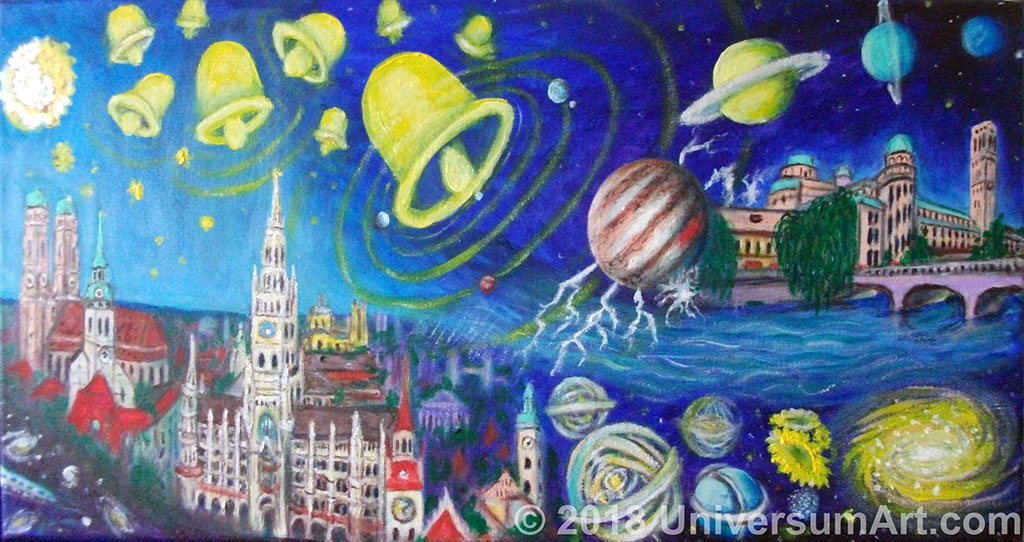 Мюнхен шумный, перезвончато-переливчатый,Переменчиво-пёстрый: солнечно-дождевой…Стоголосьями отзывчивый – но не сбивчивый! —Словно сфер небесных механизм часовой:Будто тайные орбиты планет вращающий,Шестерёнками невидимыми сцепясь… —Безоглядно – все обиды щедро прощающий! —В странной гонке всё упоительней торопясь…Многошпильный, многобашенный, колокольчатый:Разрывающийся хором сводов – чрез край!.. —Собирающийся в витраж – из воли оскольчатой,Прибывающей – волн певучим всходом: «Играй!..»То стремительный – то медлительный и задумчивый;В звон раскачанный – но в равновесье всегда…Мюнхен дикий, опьянительно в воздух взвученный! —Разворачивающихся чудес чреда!22.05.2018 г. (Мюнхен)