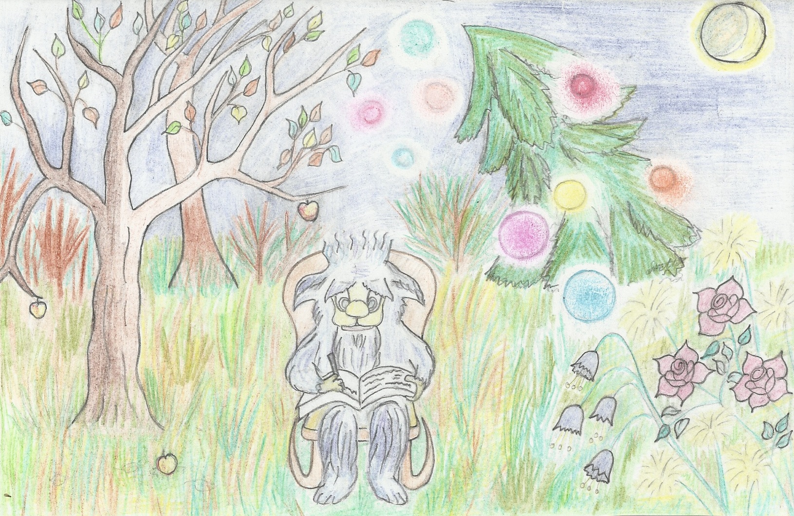 Его смех был настолько громким и противным, что от него даже проснулись птицы, спавшие на деревьях неподалеку от его жилища. Они встрепенулись и отлетели на деревья подальше.