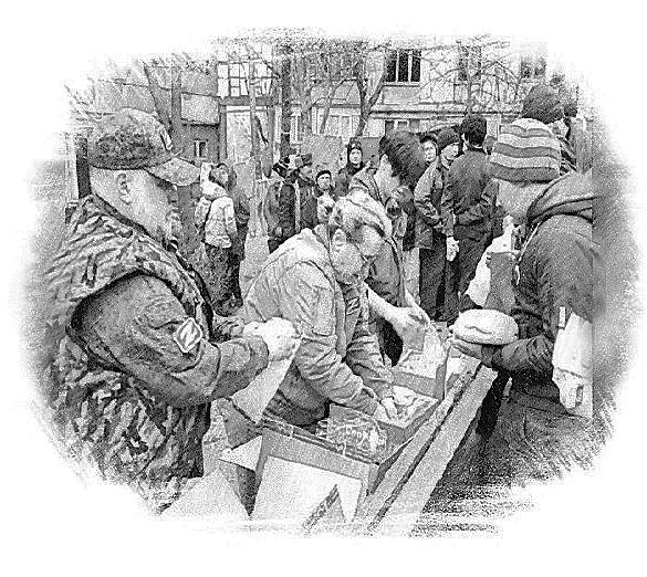 В одном из таких домов, на третьем этаже, сидел украинский снайпер, рассматривая в прицел тех, кто привёз помощь. Солнце светило в спину снайперу и щедро освещало живые мишени, что не могло не радовать его кровожадную сущность. Тем временем приехавшие практически полностью раздали привезённый провиант. Осталась полбуханки хлеба, которую Сивоконенко с улыбкой протягивал маленькому Пете. Он пришёл за хлебом, пока его мать с совсем крохотным, полугодовалым братиком сидела в подвале дома. Подвал стал для них одновременно убежищем и ловушкой, поскольку он мог спасти от артиллерийских осколков, но стал бы могилой, кинь туда гранату украинский «защитник». А гранатами украинцы «проветривали» подвалы каждую ночь, когда выбирались из своих укрытий и шли грабить мирное население.