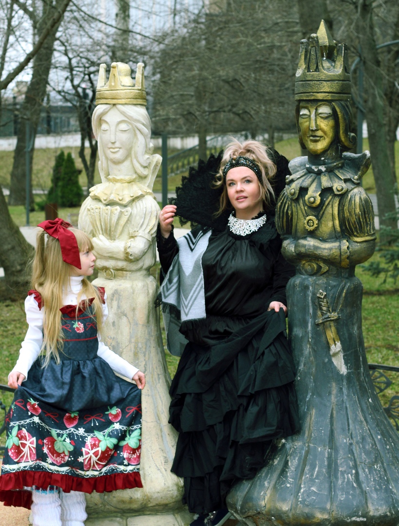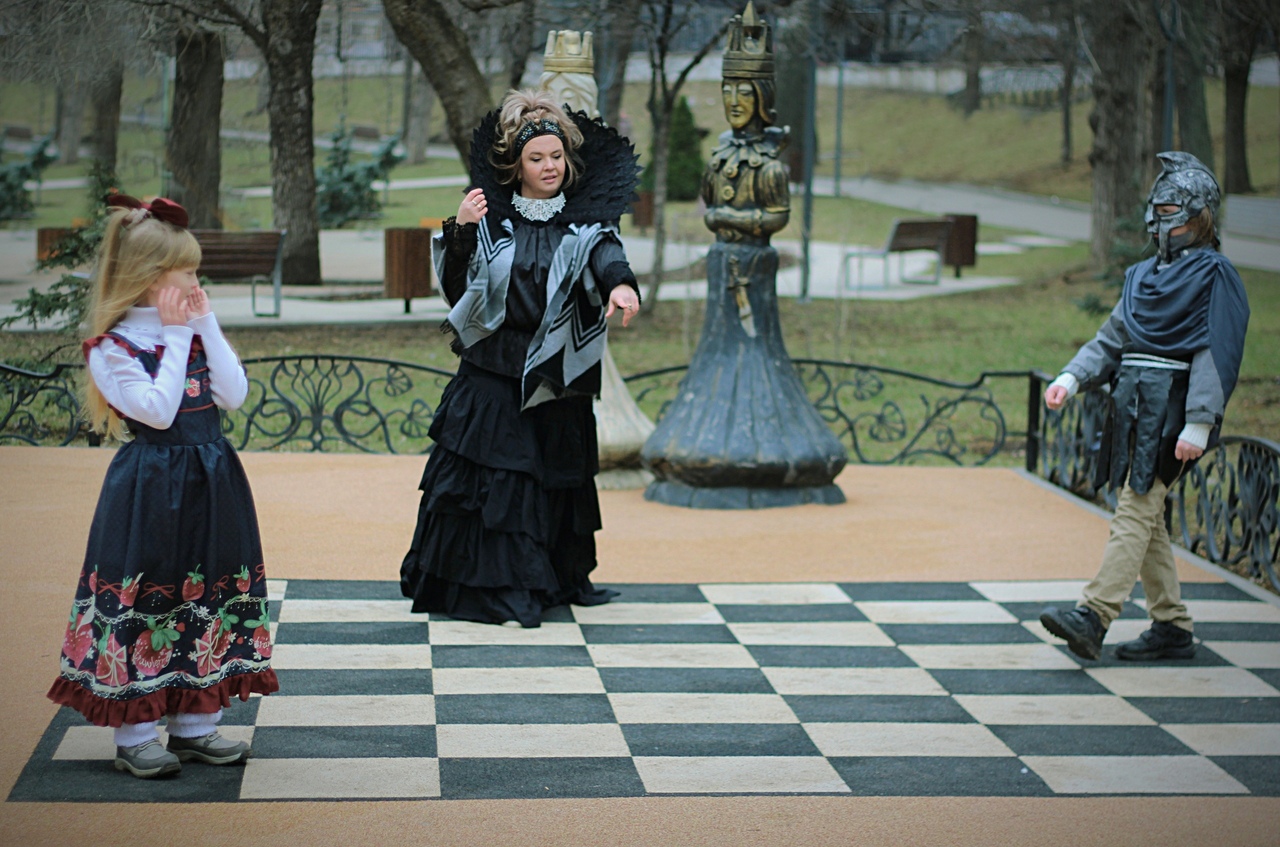 Соня была в платье Алисы, точнее Соня стала самой Алисой, а Вася белым рыцарем. Огромное поле перед ними, расчерченное, как шахматная доска, и идти нужно строго по правилам. В этом английском сюжете нормы и предписания ограничивали всю свободу передвижения. Но вот, показалась Черная королева.