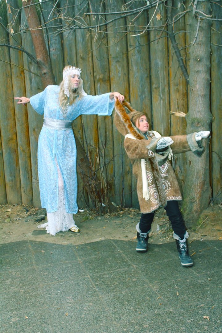 "Я пришла к тебе в замок Снежной королевы, и мы вместе решили избавить старую Данию от этого проклятья. К счастью, нам встретился Дед мороз, который подарил тебе волшебные рукавицы".