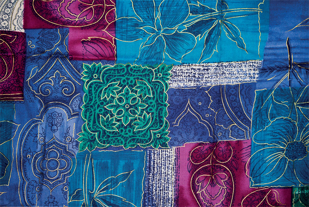 Цветовая гамма – достаточно яркая, в ней присутствуют темные цвета, но чаще они не применяются в чистом виде, а смешиваются, образуя странные цветовые сочетания и создавая эффект размытого цвета. В сочетании с основными цветами возможно использование молочно-белого оттенка, нежно-розового, светло-голубого, светло-салатового и вполне допустим цвет слоновой кости. Гамма оттенков должна иметь вид потертости, как будто они выгорели на солнце.