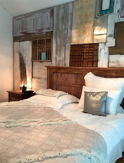 В бохо много дерева и текстиля. Пол чаще всего деревянный или каменный, устлан всевозможными ковриками. На стенах редко можно встретить обои, это либо побелка, либо штукатурка с покраской, либо дерево.