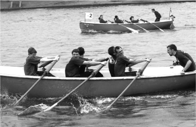 Гребля на шлюпках и ялах отличается тем, что весло закреплено на лодке с помощью различного вида устройств. Грести можно одним или двумя веслами одновременно. В связи с этим различают парную греблю – один гребет двумя веслами и распашную, когда 2-4-6-8 человек гребут каждый со своей стороны.