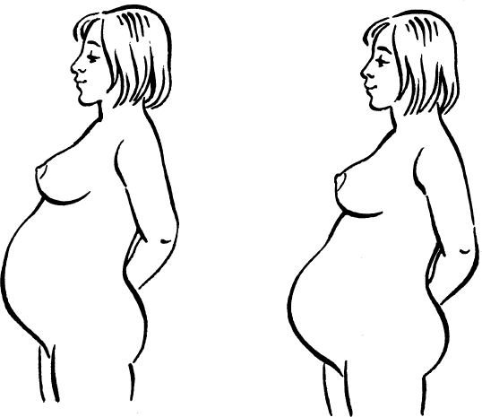 Рис. 13. На одинаковых сроках беременности формы живота у женщин выглядят по-разному
