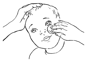 Промывайте глазки малыша каждое утро от наружного угла к внутреннему (носу). У большинства детей в первые два месяца организм не выделяет слезы, и глаза не могут самостоятельно очищаться. Когда слезные железы начнут функционировать, обычно с третьего месяца жизни, регулярное промывание глаз становится не таким необходимым.
