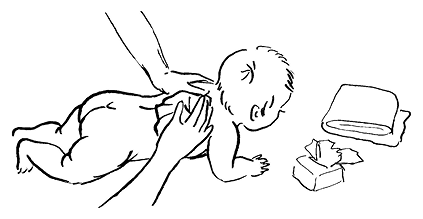 Каждое утро кожу малыша необходимо обмывать. Разденьте его после утреннего сна и положите на пеленальный столик. Возьмите влажную салфетку (или кусочек фланели, смоченной в кипяченой воде).