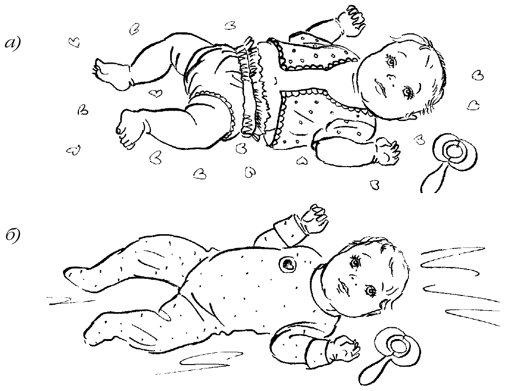 а) Ребенок в более свободной одежде при температуре 24–26 °C,