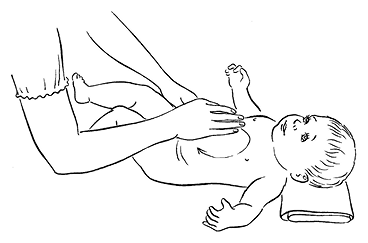 • Сделайте малышу легкий массаж животика, поглаживая его круговыми движениями по часовой стрелке.