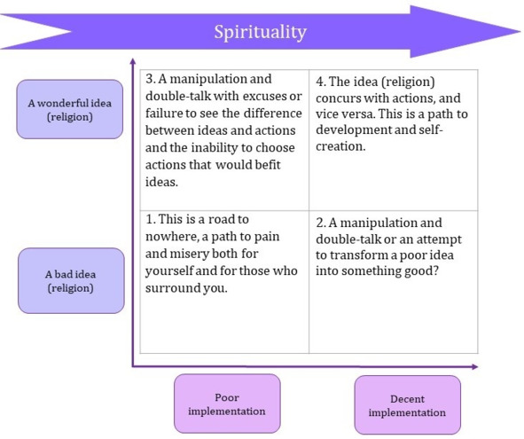 But let us get back to the topic. An idea and a way of its implementation are two quite different things. You may have a beautiful idea but it will be implemented poorly. And vice versa, you may have a poor idea but some people can turn it into a wonder! Of course, the best scenario is when we have both a wonderful idea and a decent way of its implementation. The worst-case scenario means that both an idea and a way of its implementation are horrible. I am not urging you to go and destroy religions and systems, let alone their historic and cultural heritage. By no means. It would contradict what I am trying to communicate. I encourage you to reflect while you follow a religious or ideological path on whether your way of implementing an idea is a relevant one.