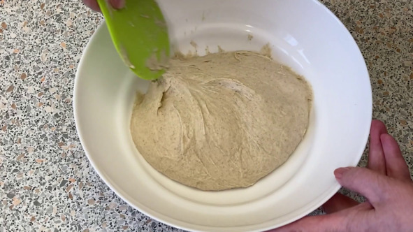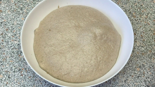 Перемешанное тесто накрываем и оставляем для аутолиза (автолиза) минут на 30—40, можно оставлять от 20-ти минут до часа.