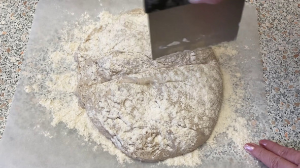 За время расстойки через каждый час сделаем 2-е обминки тесту методом растягивания и складывания.