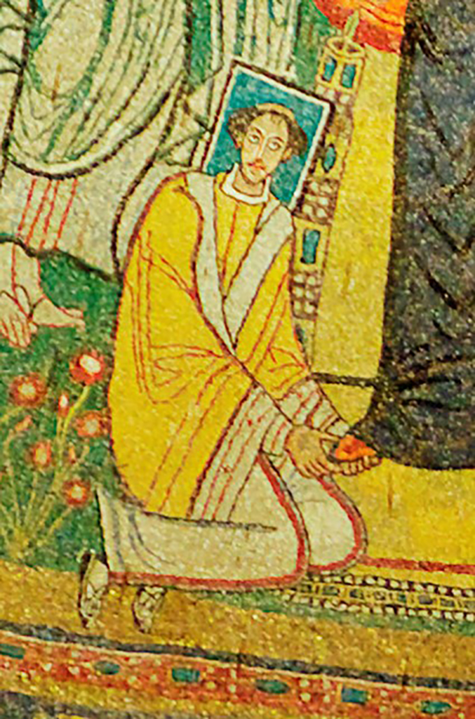 Квадратный нимб, встречающийся в мозаичных изображениях, означает, что при изготовлении мозаики персонаж был жив.
