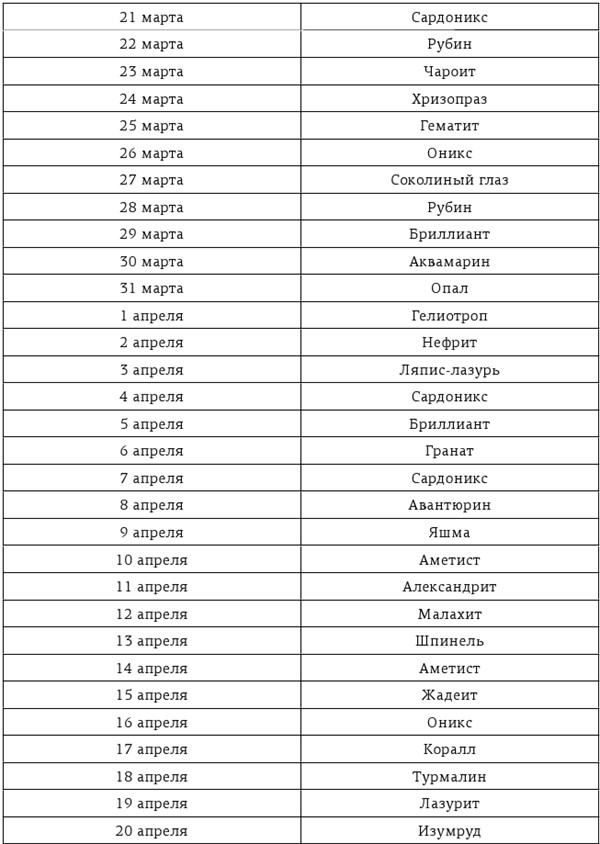 Основные камни: бриллиант, гранат, рубин, гелиотроп, изумруд, аметист, гематит, аквамарин.