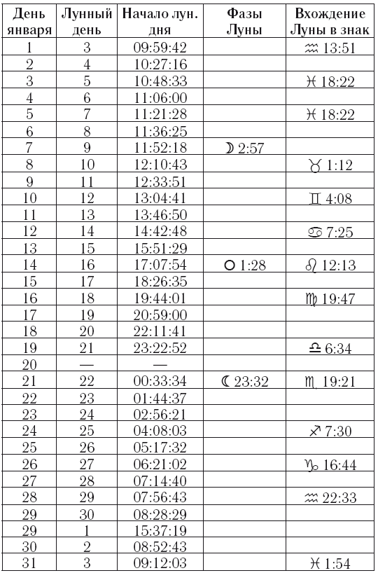 В первые дни месяца возрастает опасность аварий, травм, что стоит иметь в виду всем представителям этого знака. «Черные дни» – 1–3 января, когда помимо травмоопасных ситуаций возможны ссоры, потери денег и прочие непредвиденные проблемы. Проведите этот период спокойно, а затем ситуация заметно улучшится.
