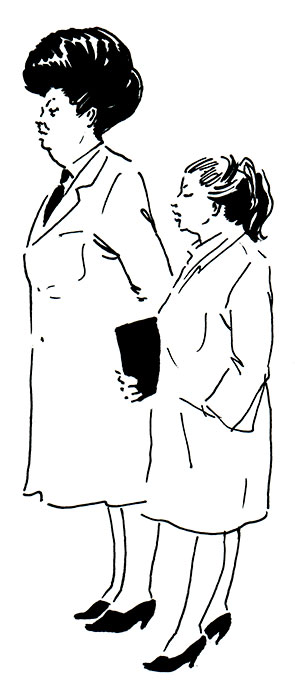 Разговоры сразу стихли. Только стук каблучков невысокой женщины, направлявшейся к столу, нарушал тишину. Она села, открыла тетрадь и приготовилась записывать. Рядом встала сотрудница с птичьим гнездом на голове, причем подошла она совершенно бесшумно. Как дородной женщине удавалось ходить на каблуках, не издавая никаких звуков, так и осталось для Вероники загадкой.