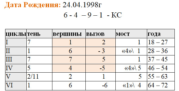 – Составление таблицы девятилетних жизненных циклов