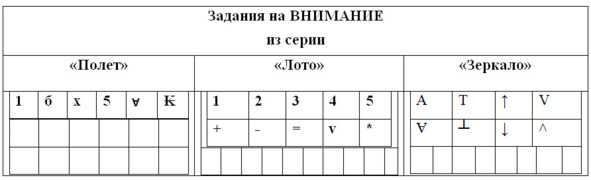 1. Задания из серии «Полет», «Лото», «Зеркало»;