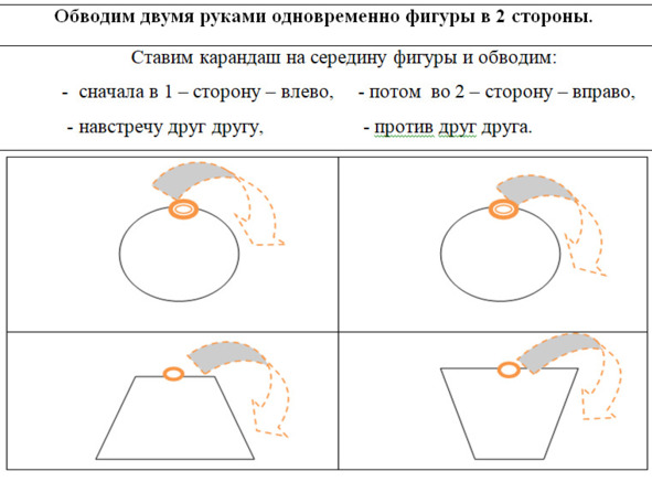 Обводим двумя руками две фигуры одновременно.